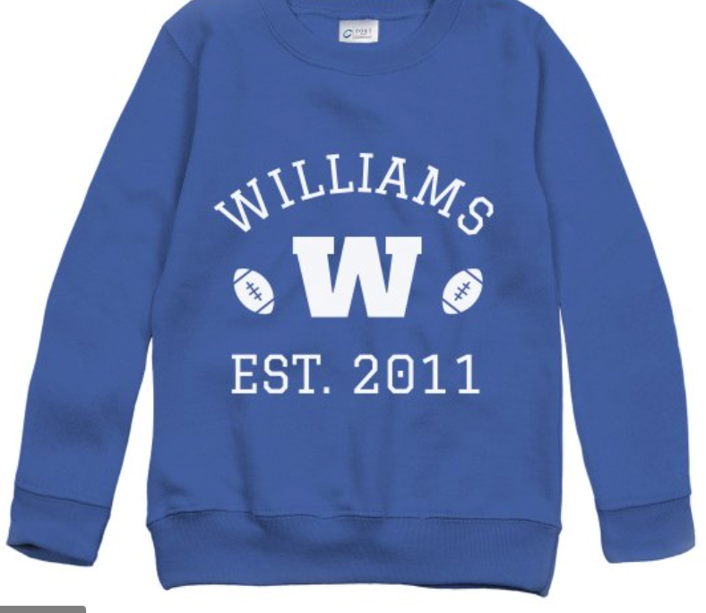 PLEASE NOTE: This option will ONLY use black or white font, depending on what color crewneck is chosen. If you would like colored vinyl, please go to Personalized Youth Crewneck [COLOR]!