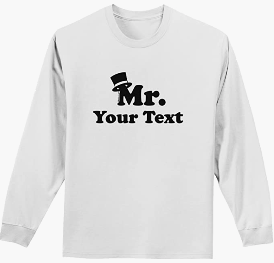 PLEASE NOTE: This option will ONLY use black or white font, depending on what color shirt is chosen. If you would like colored vinyl, please go to Personalized Adult Long Sleeve [COLOR]!
