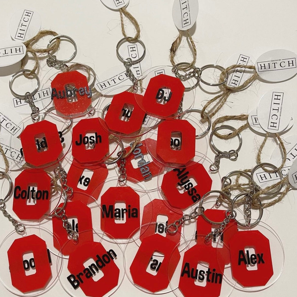 Keychains are the perfect item to commemorate an event or to celebrate a group of people! Single color designs can be made by cutting out vinyl. More intricate designs will be printed on sticker paper and added to the side (see second photo). Keychains can be single sided or double sided. If the design is too complicated, we will work with you to simplify to still make your crafty dreams come true!