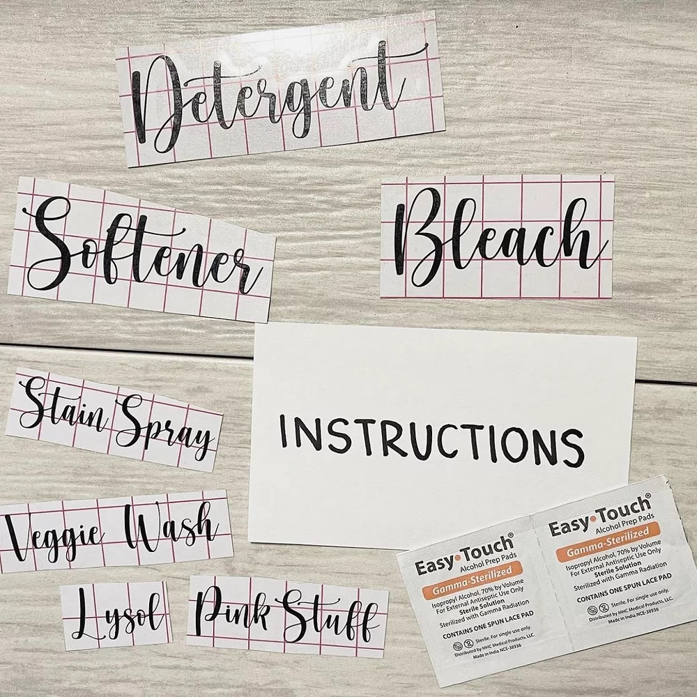 Enjoy adding these one-color vinyl stickers to help organize your home, or personalize something yourself! Pick any design to be cut into a vinyl sticker or choose a text and a font from our font selection. If the design is too complicated, we will work with you to simplify to still make your crafty dreams come true! Each order includes application instructions and alcohol pads.