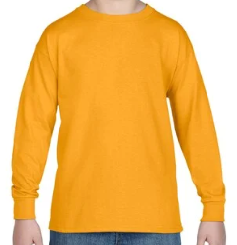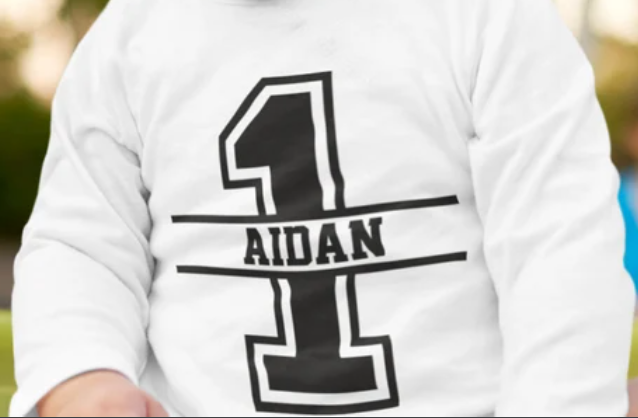 PLEASE NOTE: This option will ONLY use black or white font, depending on what color shirt is chosen. If you would like colored vinyl, please go to Personalized Youth Long Sleeve [COLOR]!