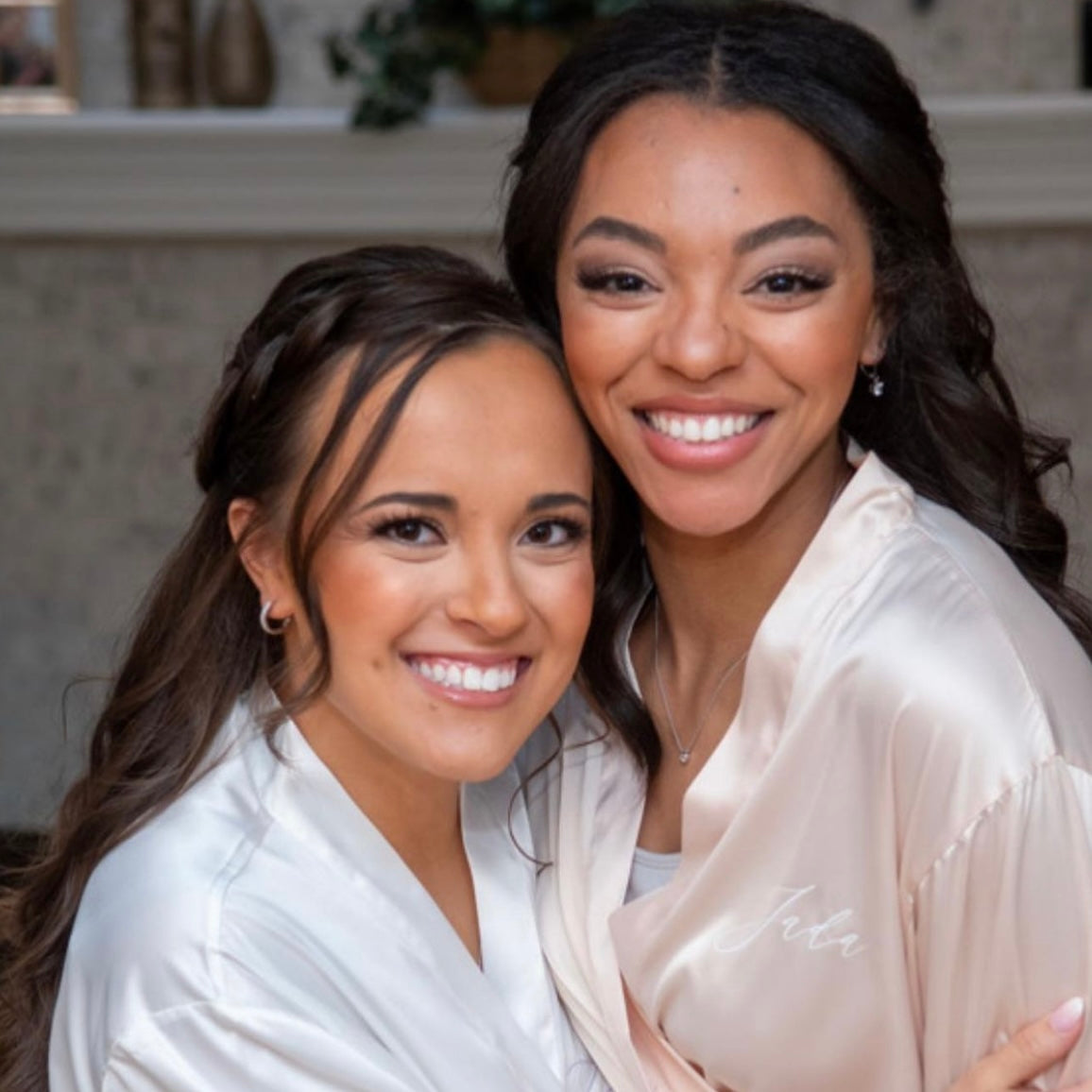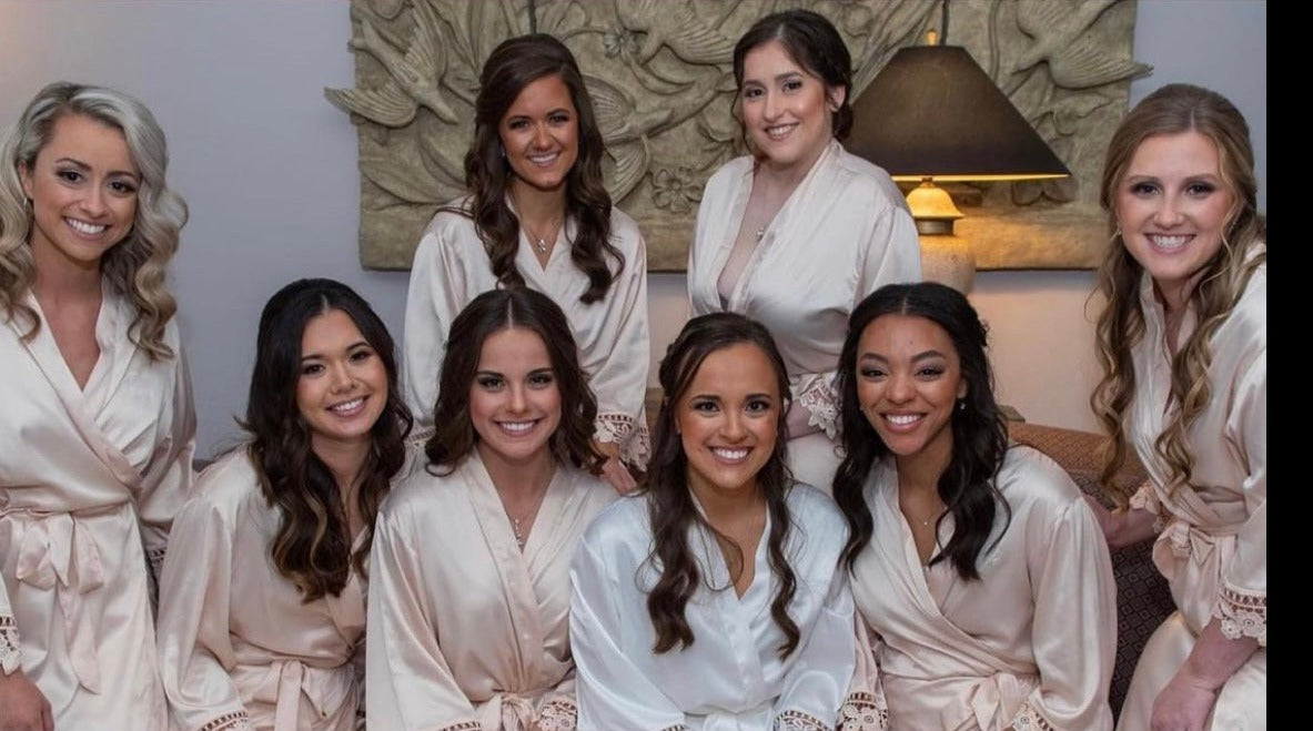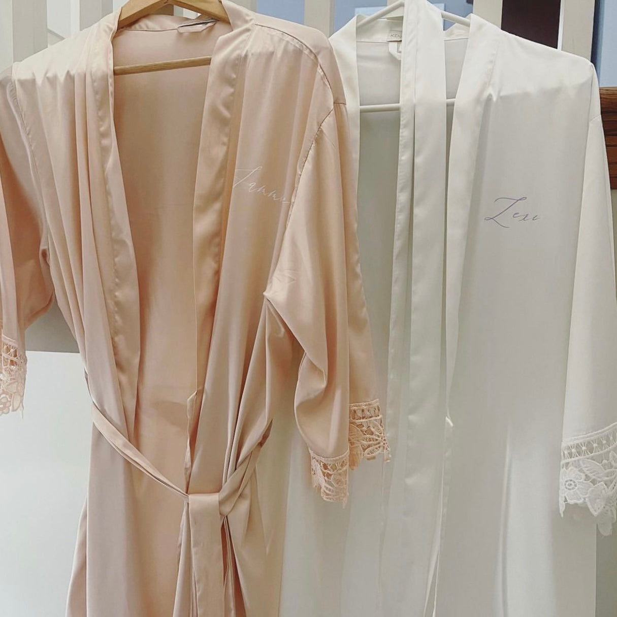 Let's get your ladies all looking beautiful together! Get these silk robes for yourself and your bridesmaids to get the perfect getting ready photos. The robes are one-size-fits-all and only come in the light pink and white colors. Pick any font from the font selection, and you can decide what text you would like.
