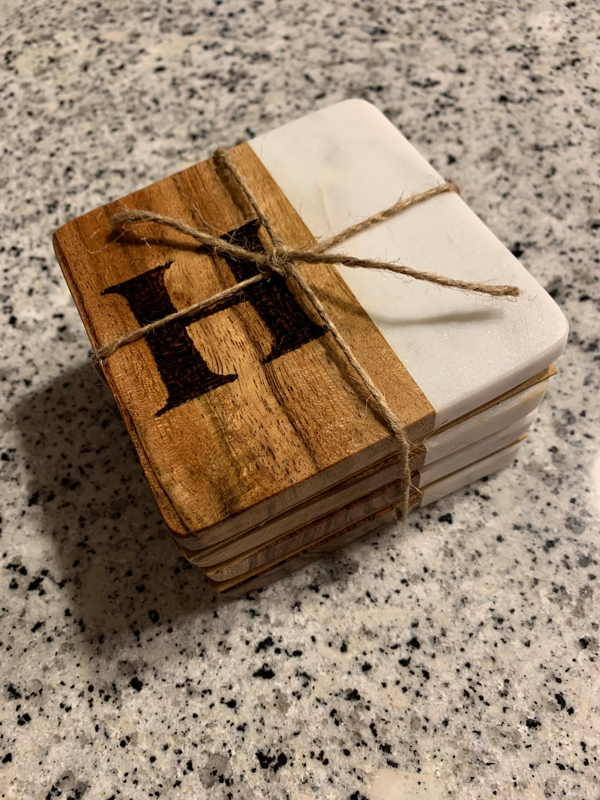 Add a personal touch to your side table! Pick any design to be woodburned onto the coasters or choose an initial and a font from our font selection. If the design is too complicated, we will work with you to simplify to still make your crafty dreams come true! Orders come in sets of 4.